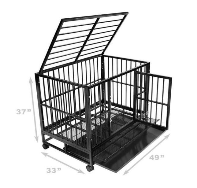 Ensiluokkainen rakenne: Kestävä, vankka lemmikkieläinten häkki, joka on valmistettu kaupallisesta teräksestä, ammattimaisesti suunniteltu varmistamaan lemmikkieläinten turvallisuus, mukavuus ja pitkäikäinen kestävyys. Häkissä on 3/4 tuuman runko, joka on vahvistettu halkaisijaltaan 1/2 tuuman (20 gauge) hitsatulla teräsputkella, joka tarjoaa kattavan lujuuden ja kestävyyden ylhäältä alas.