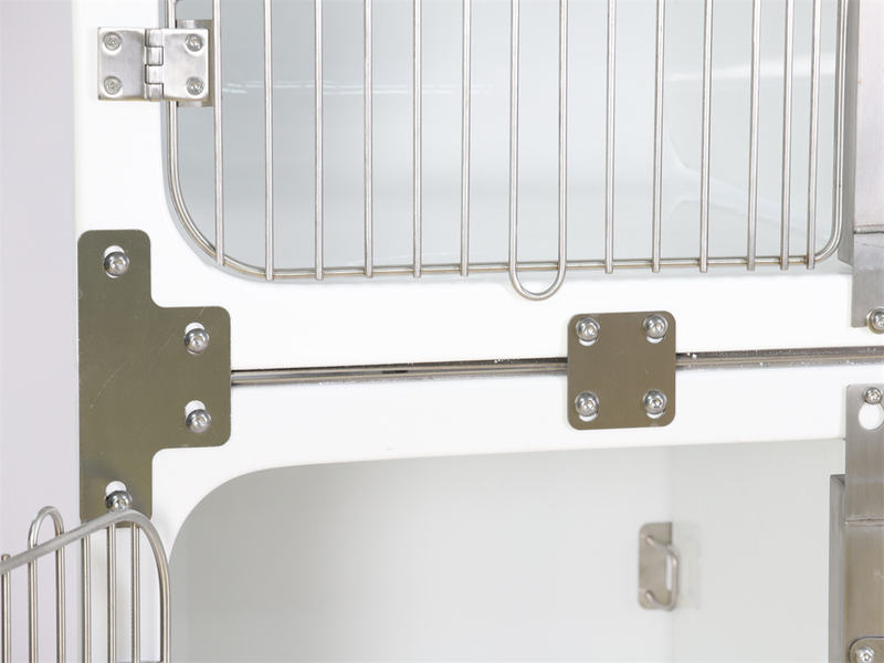 Pohjaverkko, jäteastia, keskiseinä, neljännesverkoinen lepohylly, läpinäkyvä ovi lämpömittarilla/kosteusmittarilla, kangasverho, pyörätelineet kaikkiin kokoihin, metalliset vesiputket ja letkut eri pituuksilla, kulmakappaleet ja T-liitokset. Veterinary Waterproof Glass Fiberglass Modular Dog Cage -häkin laaja lisävarustevalikoima parantaa häkin toimivuutta erilaisiin vaatimuksiin. Saatavana manteli- ja valkoinen viimeistely.