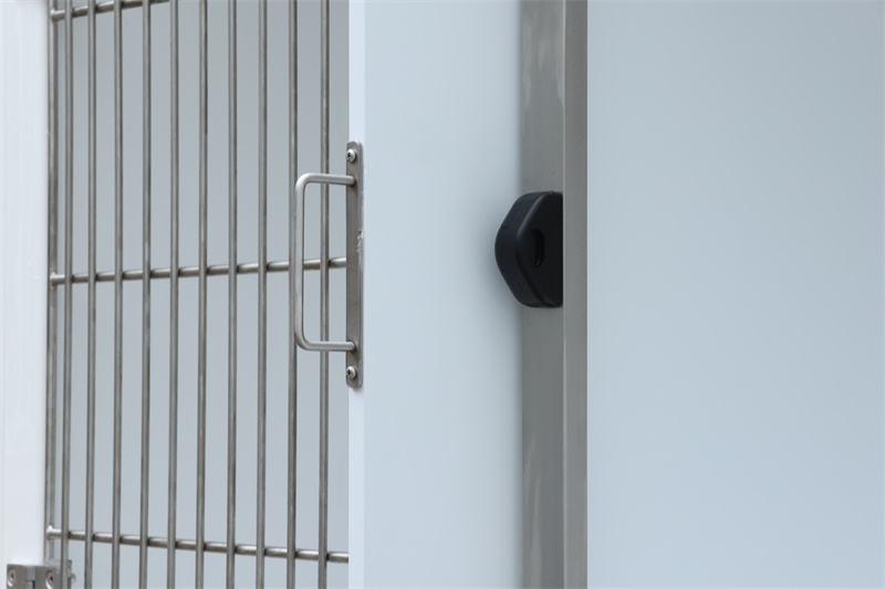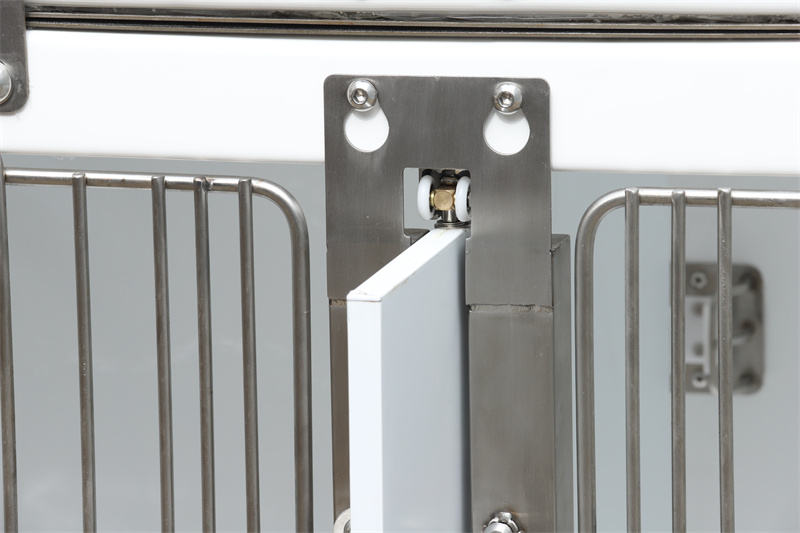 Esiasennetut ruiskutussuuttimet ja -letkut, tyhjennysjärjestelmä suodattimella ja pistorasiat muuttavat sen pelkästä häkistä monikäyttöiseksi työasemaksi. Sähkölaitteet, kuten anestesiakoneet, happikonsentraattorit ja lämmitystyynyt, voidaan kytkeä pistorasioihin ja ripustaa oven keskipalkkiin. Eläinlääkinnällinen vedenpitävä lasikuitu modulaarinen koirahäkin etuovi mahdollistaa aurinkosuojan asentamisen U-muotoisten mutkien kautta, mikä estää auringonvalon ja toimii tuulensuojana.